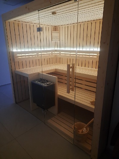 Die moderne Innenarchitektur integriert die Sauna in den Wohnraum - Wellness auf einer Wohnebene!