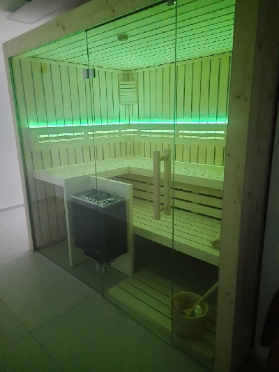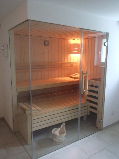 Die moderne Innenarchitektur integriert die Sauna in den Wohnraum - Wellness auf einer Wohnebene!
