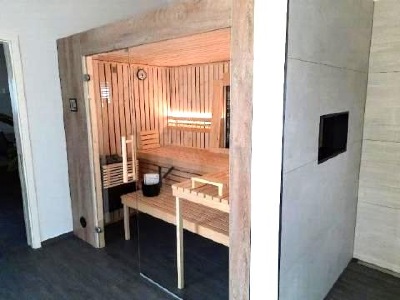 Die moderne Innenarchitektur integriert die Sauna in den Wohnraum - Wellness auf einer Wohnebene!